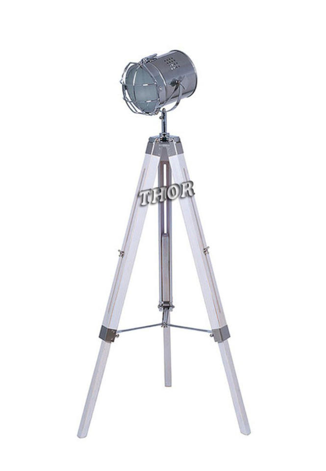 Vintage Modern Collectible Chrome Searchlight White Base Screw Tripod Nautical Spotlights Floor Lamp Home Decor