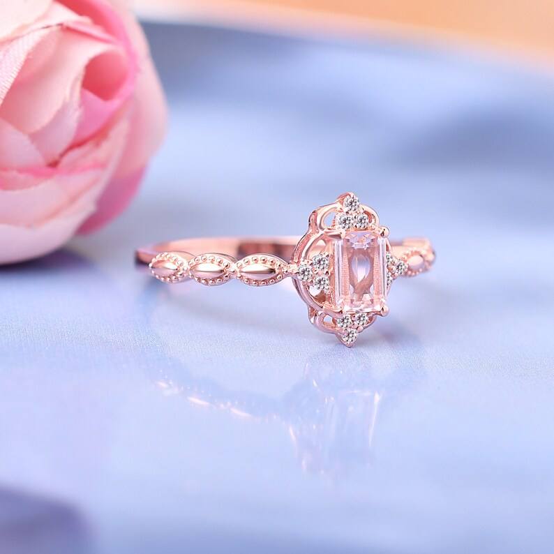 Vintage Morganite Engagement Ring Art Deco Bridal Ring Blush Pink Gemstone Natural Morganite Sterling Silver Gold