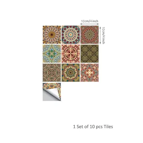 Vintage Moroccan 10pcs Self-Adhesive Wall Sticker Polished Tiles for Bathroom Kitchen Firebrick Function for Room Floor