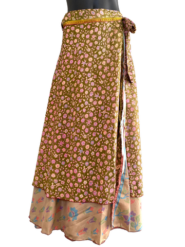 Vintage Women's Silk Sari Maxi Skirt Assorted Floral Wrap All Seasons Boho Hippie Festival Style Breathable Comfort