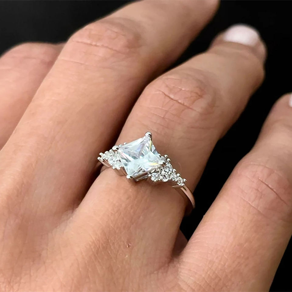 14K Solid Gold Princess Cut Alexandrite Engagement Ring