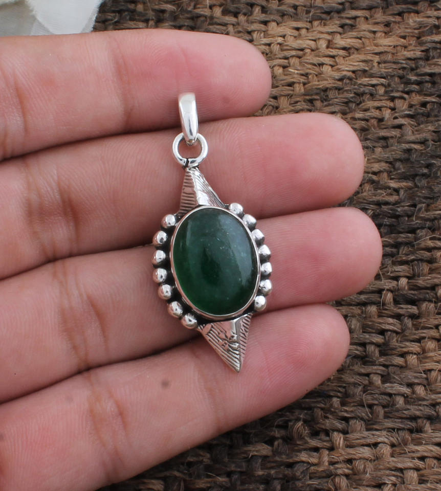 Vintage Natural Green Jade Sterling Silver Platinum Plated Bezel Setting Pendant Inlaid Antique Imperial Green Buddha Charm