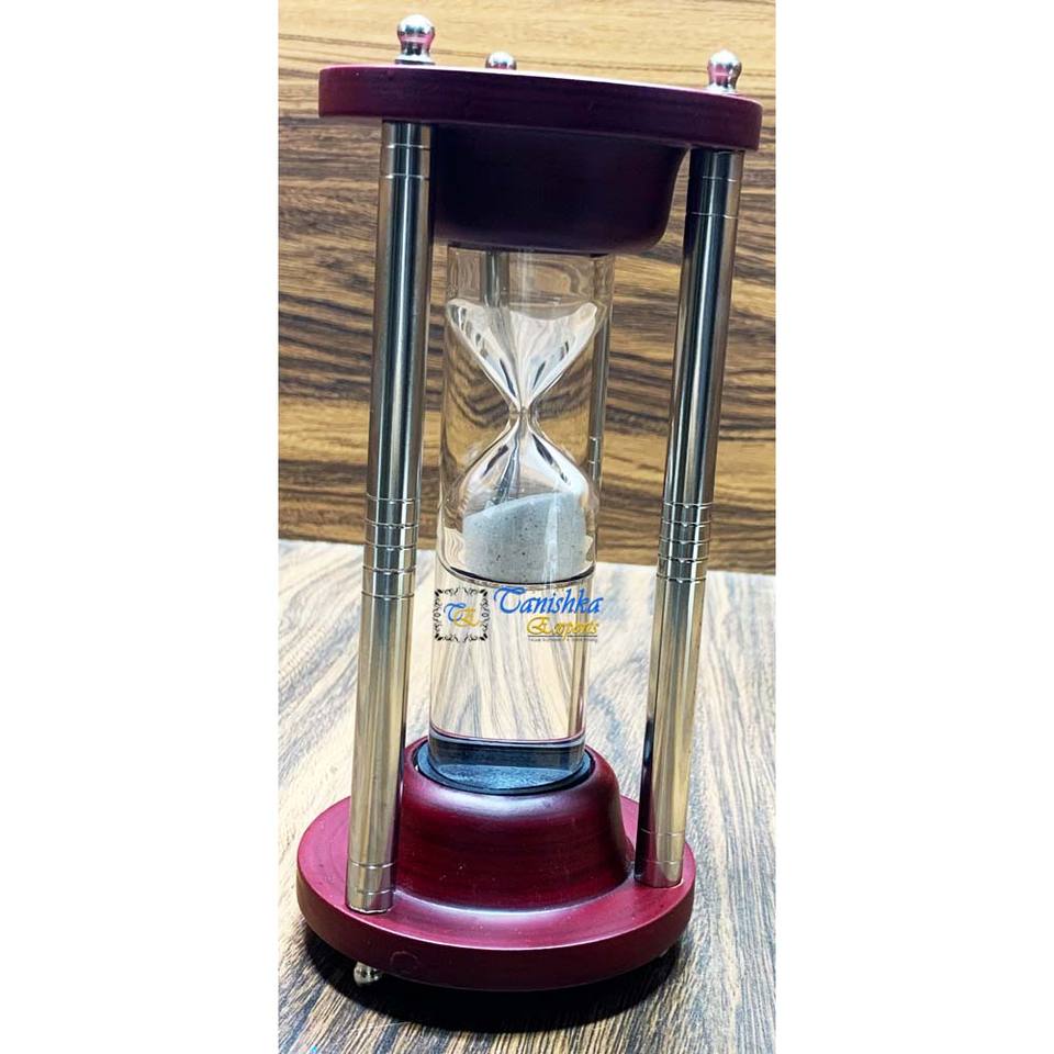 Vintage Nautical Sandtimer Hourglass Clock Home Office Decorative Wooden Base Marine Ship-Themed Metal Craft for Collectibles