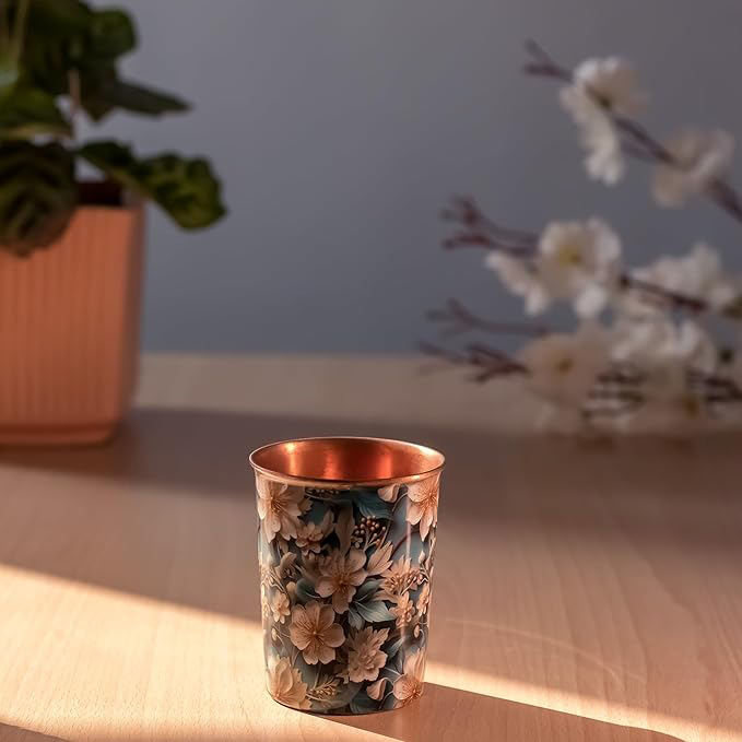 Vintage New Arrival Pure Copper Drinking Glass Enamel Printed Flower Design Custom Size Health Conscious Benefits Yoga Gym
