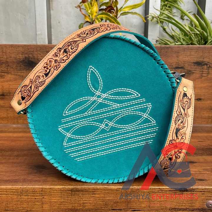 Product Name:Boot Stitch Hand Tooled Suede Leather Canteen Purse