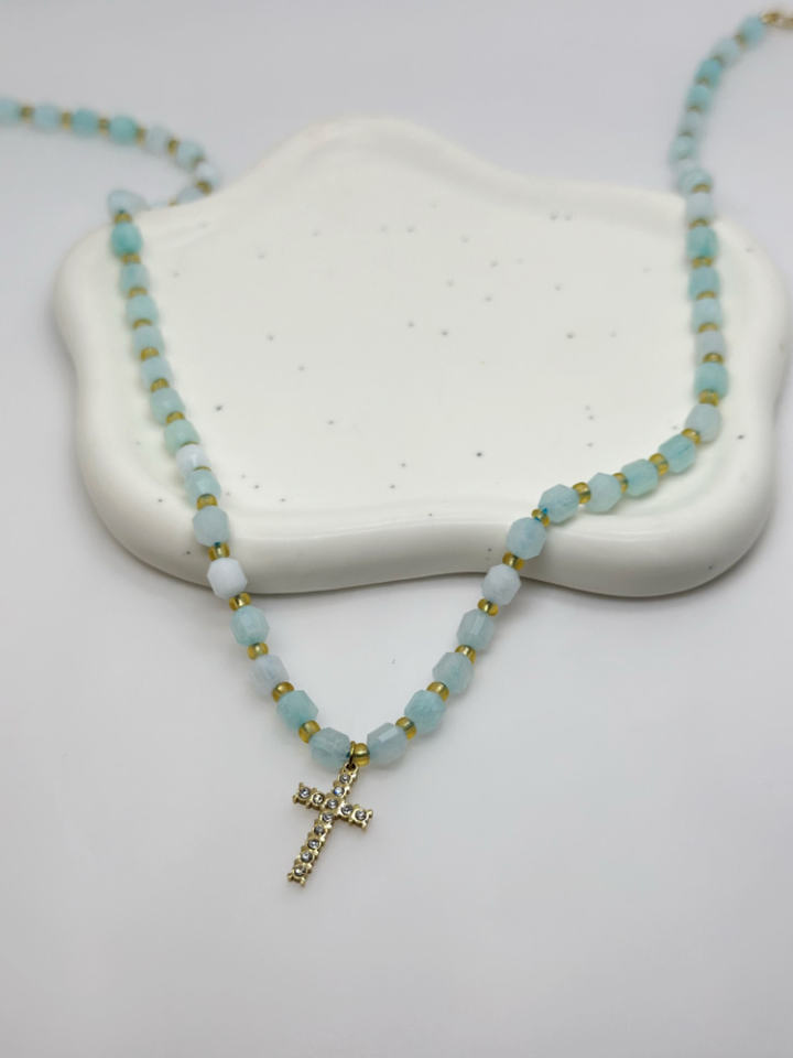 Vintage New Stainless Steel Necklace Stylish Fashionable Gold Plated Link Trendy Religious Chokers Necklaces Colorful Blue Bead