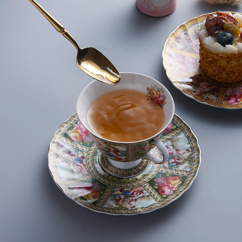 Vintage Nordic Ceramic Coffee Cup and Saucer Western People Traced Gold Line Set Creative Phnom Penh Water Cup matte afternoon
