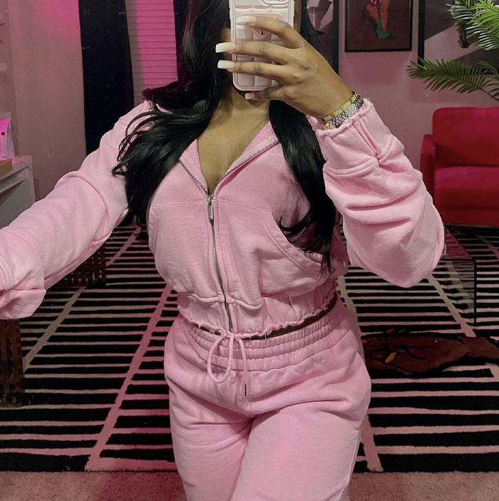 Vintage Old Crop Hoodie Tracksuit for Women Custom Two-Piece Cotton Zipper Acid Wash Sweatsuit Shorts and Hoodie Set