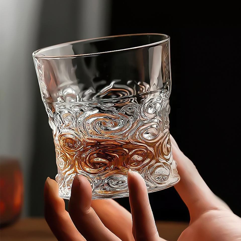 Vintage Old-Fashioned Clear Drinking Glass Cup Embossed Rock Glasses Whiskey Tumblers Shot Glass Product Category