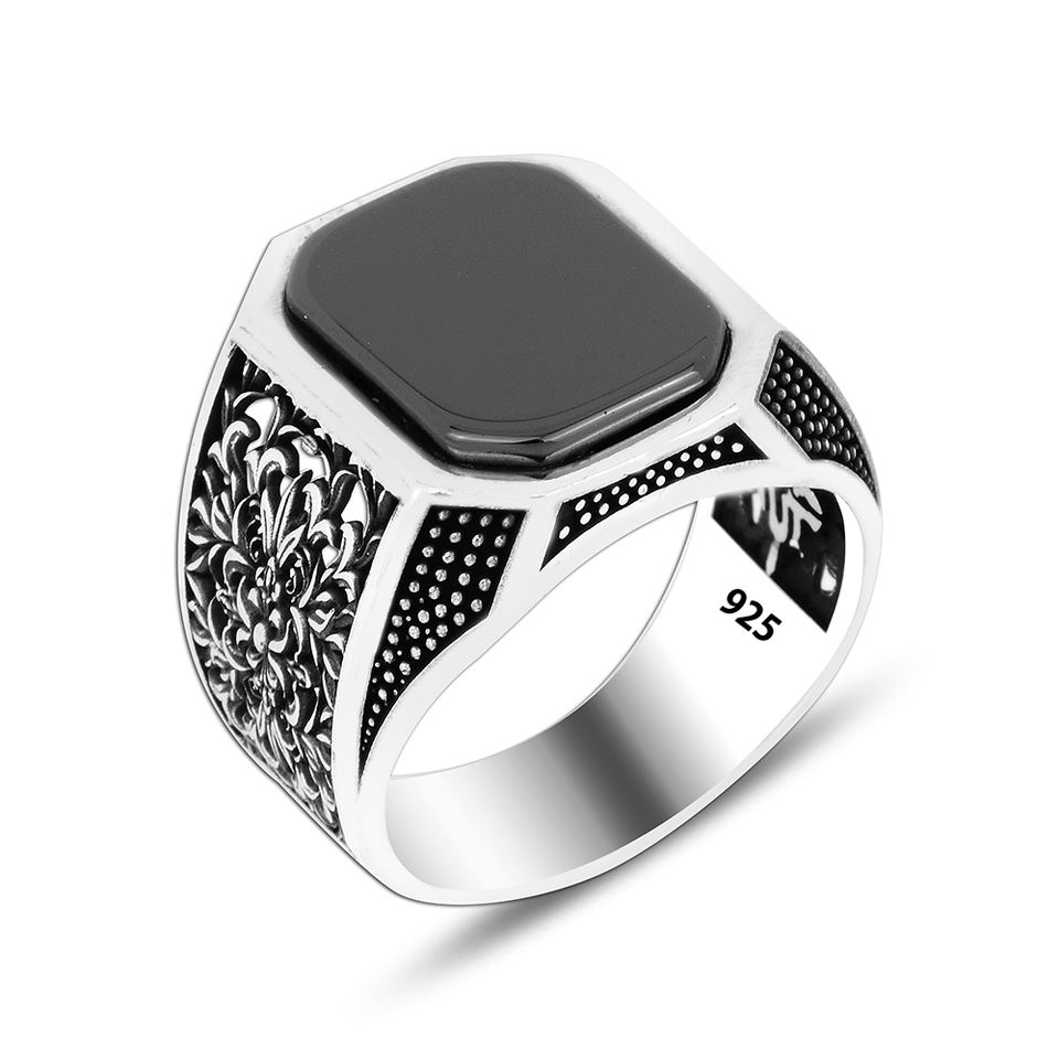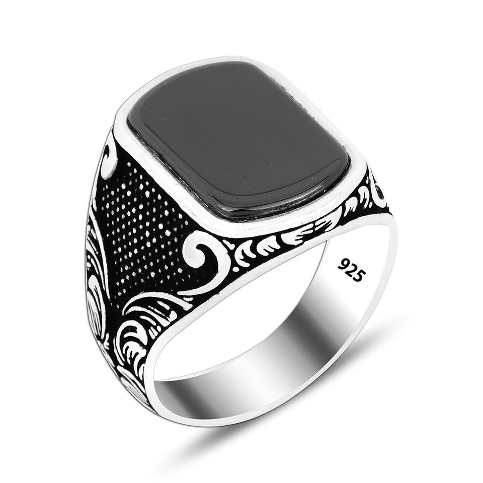 Vintage Onyx Stone Ring 925 Silver Jewelry Wholesale Silver Ring for Men Luxury New Art Design Shinning Fine Male Jewelry Rings