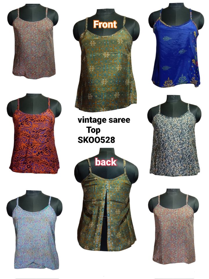 Vintage Open-Top Women's Boho Top One Size V-Neck Tank with Short Length Trendy Silk Saree Featuring Hollow Ribbons Decoration
