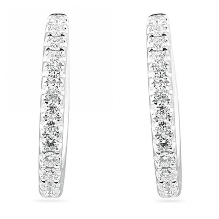 Vintage Oval Diamond Earrings 18K White Gold Oval Brilliant Cut Pave Set Single Row Huggie Hoop Wedding Engagement Jewelry