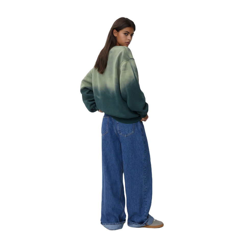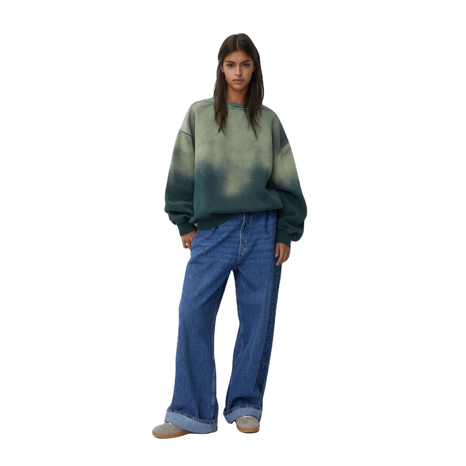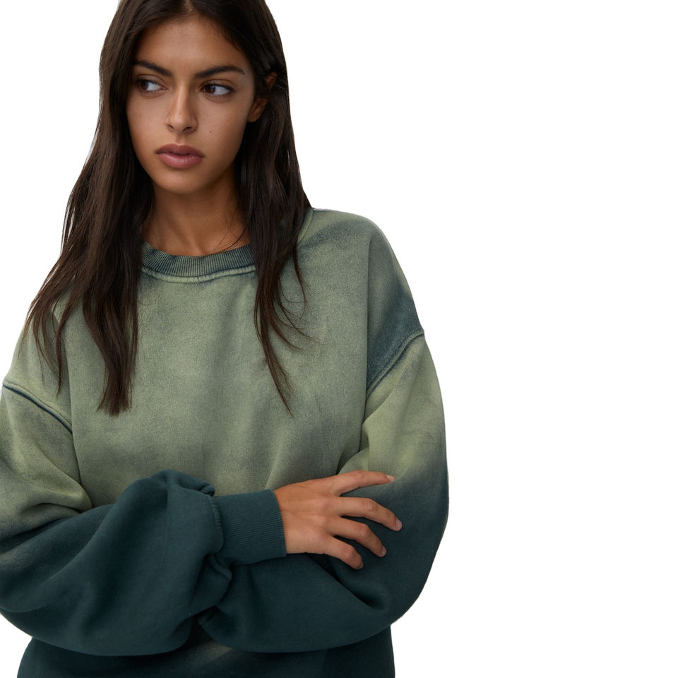 Vintage Oversized 100% Cotton Women's Sweatshirt Long Sleeve Crewneck With Lined Design and Customizable Print for Winter