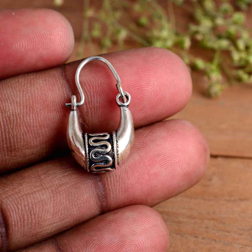 Vintage Oxidized 925 Sterling Silver Tribal Hoop Earrings Handmade Ethnic Bali Style Small Dangle Earrings for Women