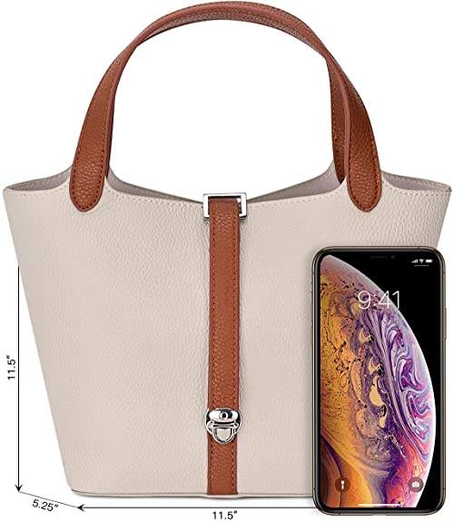 Leather Bucket Tote Handbag