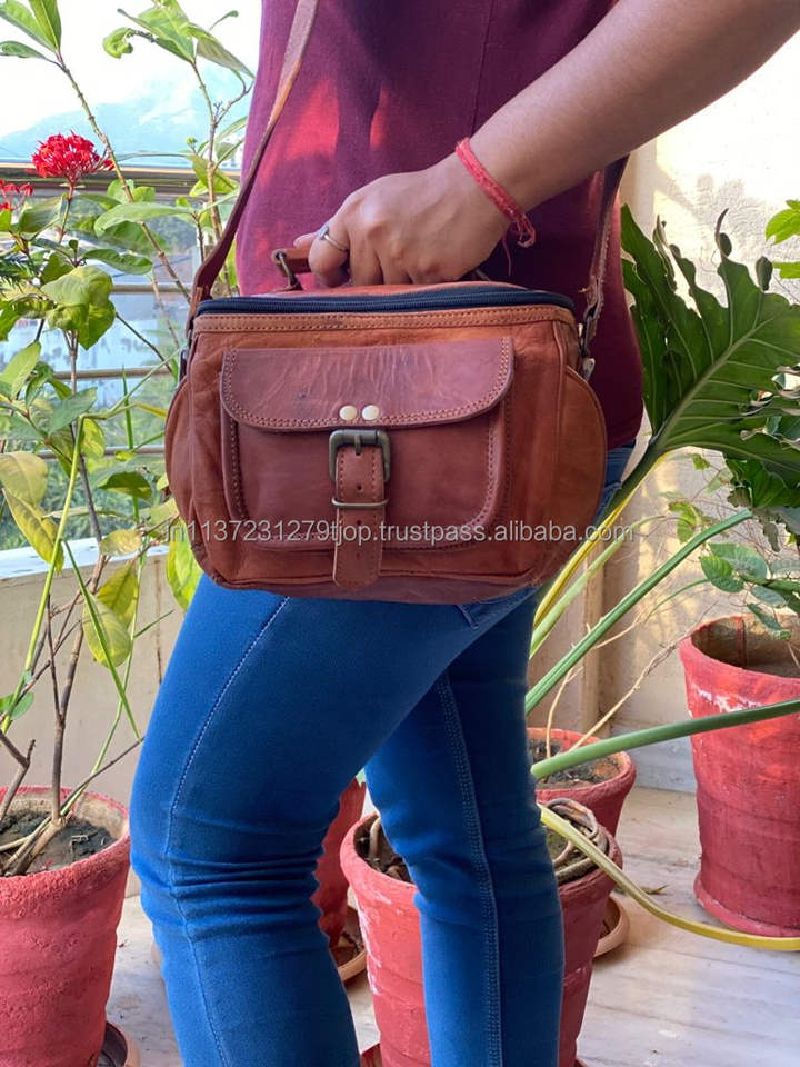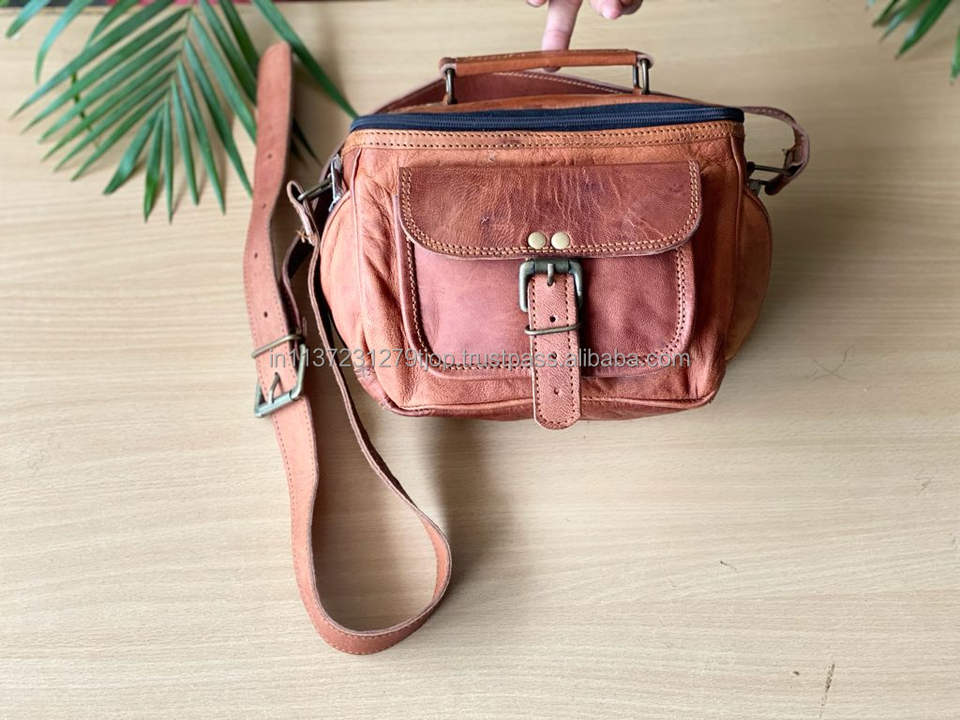 Vintage Padded Goat Leather Camera Bag Travel Camera Cases DSLR Camera Bag