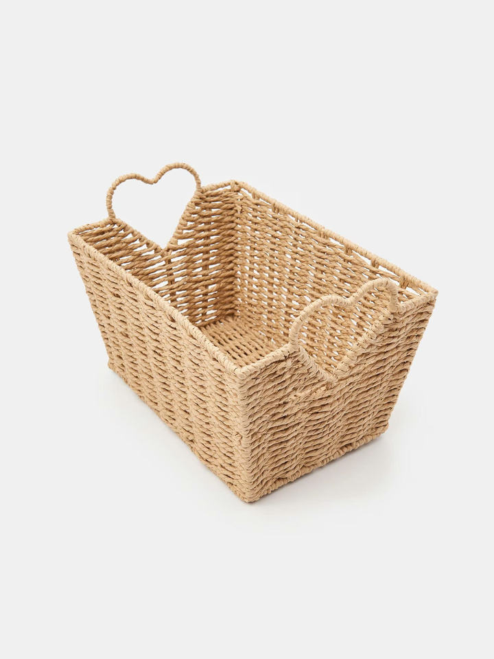 Vintage Paper Rope Storage Basket With Heart Handles Rectangular Woven Organizer Bin For Toys Clothes Nursery Decor