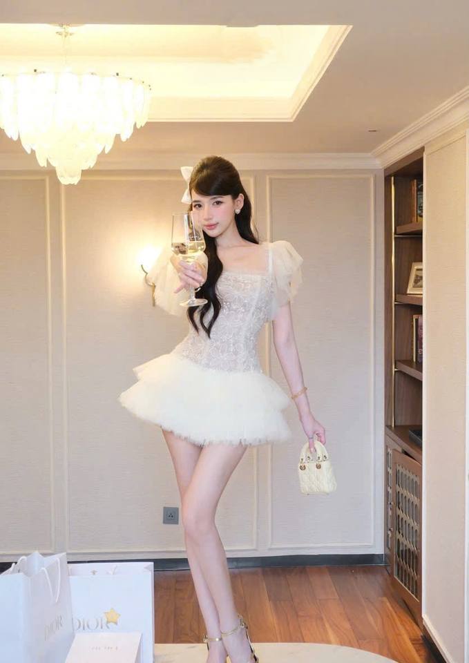 Vintage Party Sweet Tight Waist Mini Length 100% Polyester Ruffle Sleeve Embroidered Organza for FLOWER LACE DRESS MESH LAYER