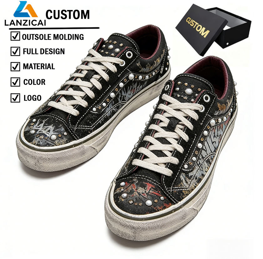 Vintage Pearl Rivet Decor Casual Sneakers For Women Non Slip Comfort GothicStyle Low Top Sneakers custom skateboarding shoes Men