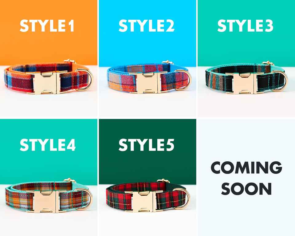 Vintage Personalized Plaid Set For Christmas Gift,Scottish Tartan Dog And Leash With Bow,Custom Engraved Name Puppy Collar