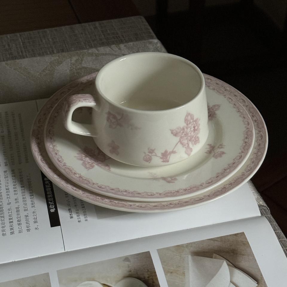 Vintage Pink Flower Printed Ceramic Dinnerware Set Retro Floral Charger Plates and Dishes Set