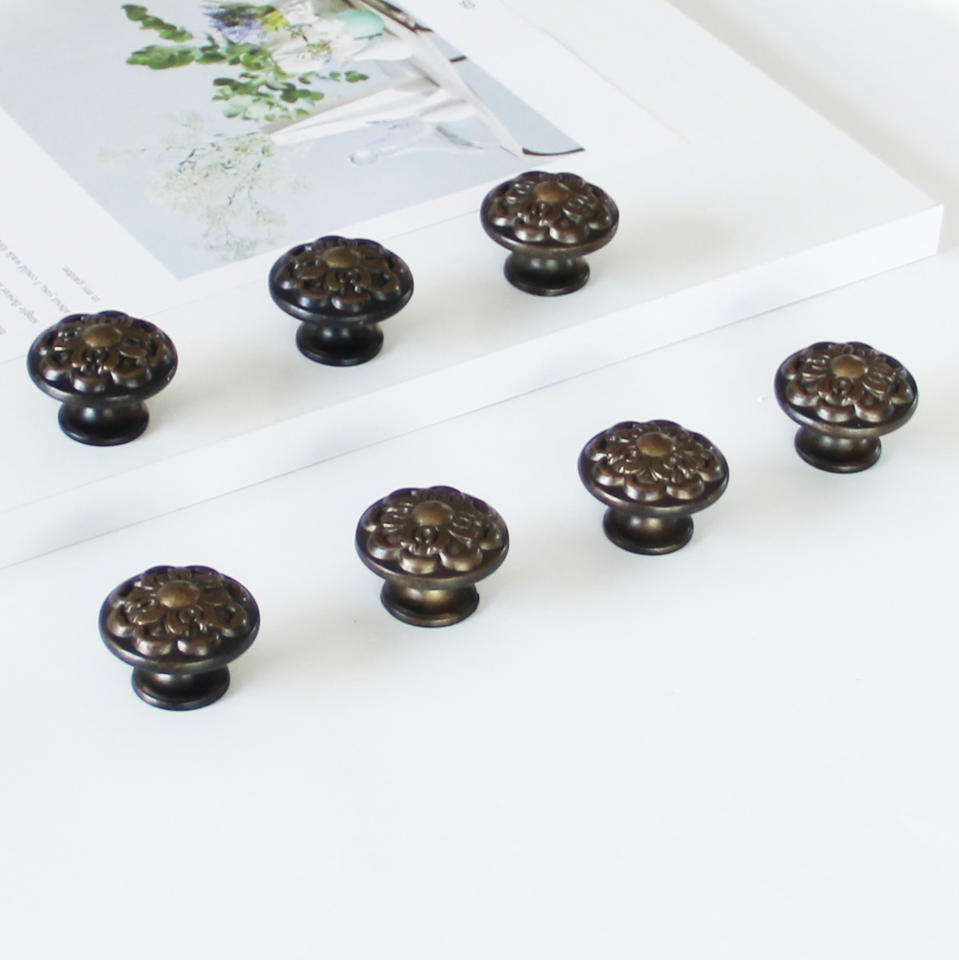 Vintage Plastic Cabinet Knobs Antique Bronze Flower Design Durable Drawer Pulls Decorative Furniture Handles for Kitchen