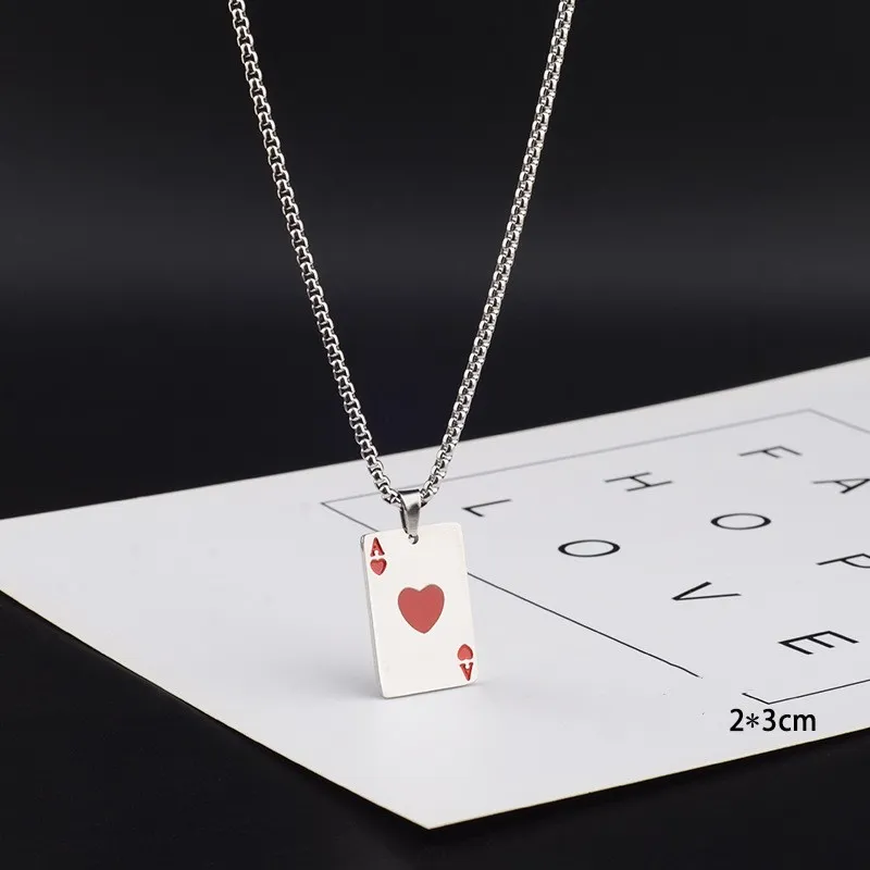 Vintage Poker Pendant Necklace Men Women Fashion Titanium Steel Trendy Punk Style Stainless Steel Silver Pearl Diamond Chains