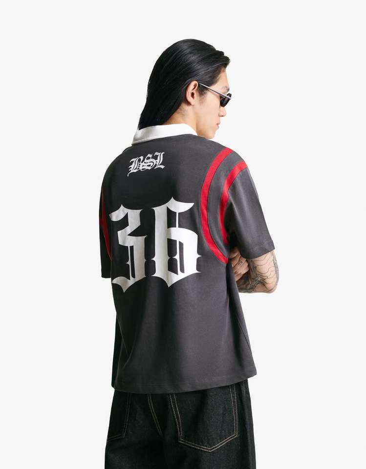Vintage Polo Collar Streetwear American Football Jersey Short Sleeve Graphic Oversized T-Shirt Contrast Stripe Retro Top