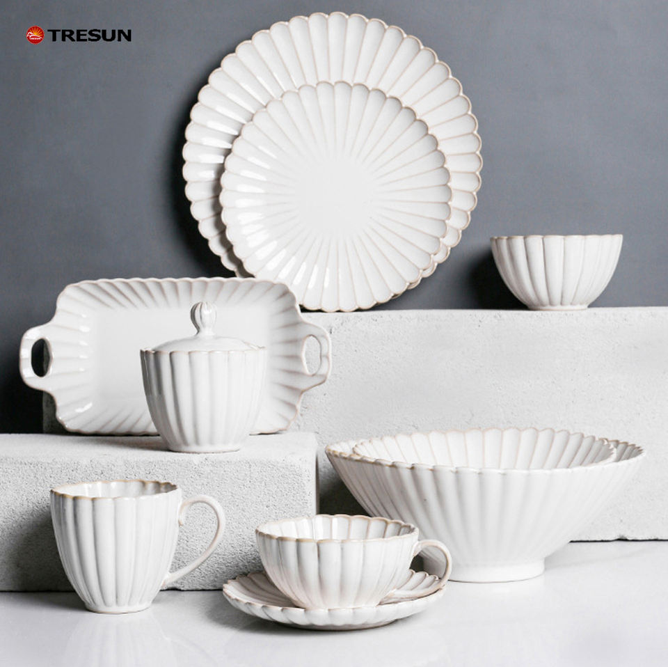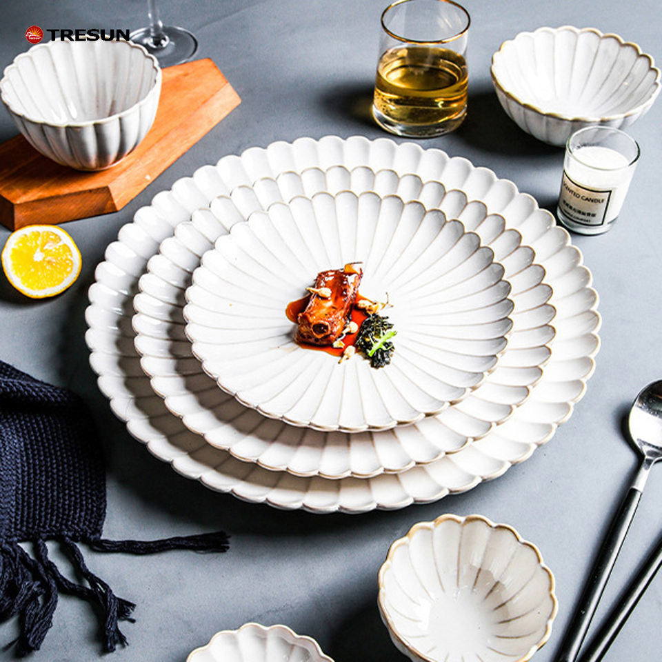 Vintage Porcelain Flower Shape Ceramic Charger Dinner Plate Platter Dessert Serving Dishes for Wedding Event Home Dinnerware