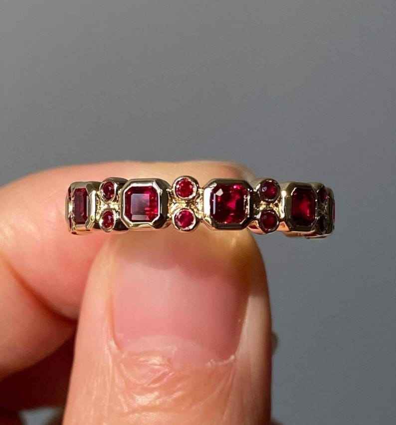 Vintage Princess Cut Ruby Wedding Band July Birthstone Unique Matching Stacking Half Eternity Promise Ring