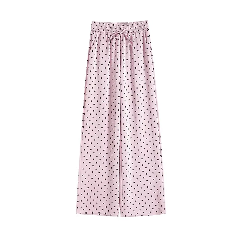 2024 Vintage Polka Dot Satin Pant High Waist Wide Leg Minimalism Straight Loose Trousers for Women New Spring Elastic Waist