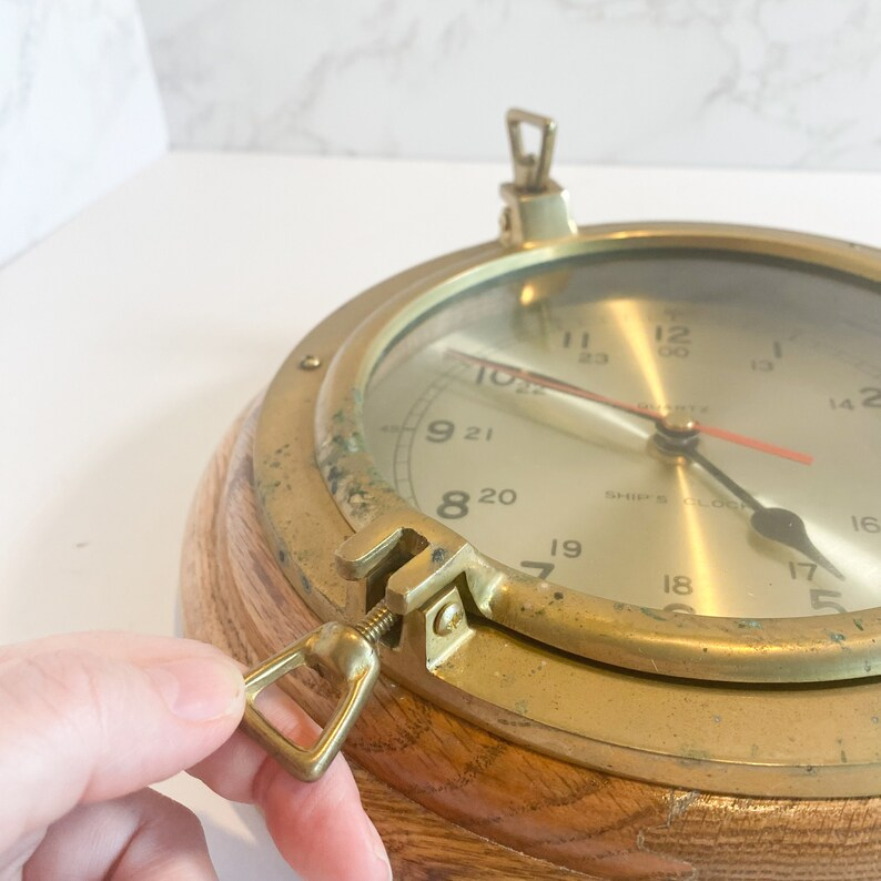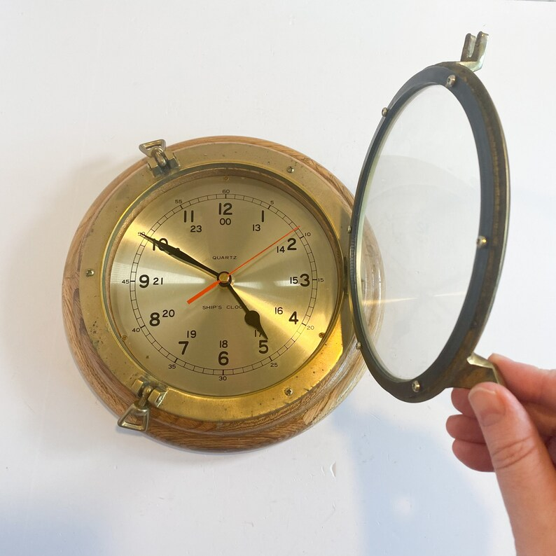 Vintage Quartz Nautical Ships Clock Brass and Wood Hanging Ships Clock Porthole Clock by Calvin handicraft