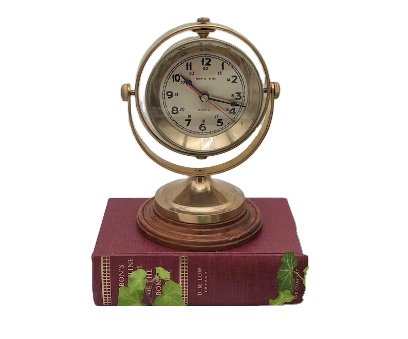 Vintage Quartz Solid Brass Maritime Ship Clock Single Face Art Deco Design on Rotating Stand by Calvin Handicraft