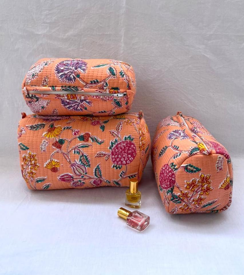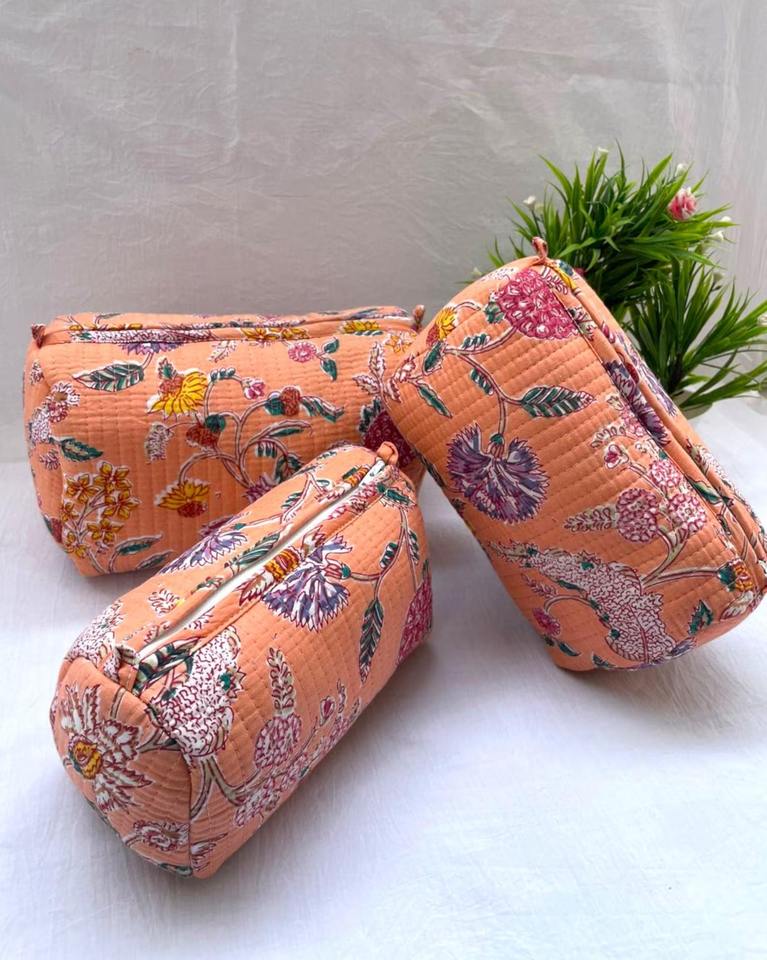 Vintage Quilted Organic Cotton Large Capacity for Bag Set Floral Travel Cosmetic Case Water-Resistant Zipper Eco-Friendly