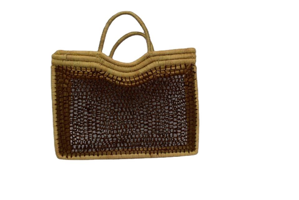 Vintage Raffia Bucket Bag with Two Handles Open Closure Style for Women