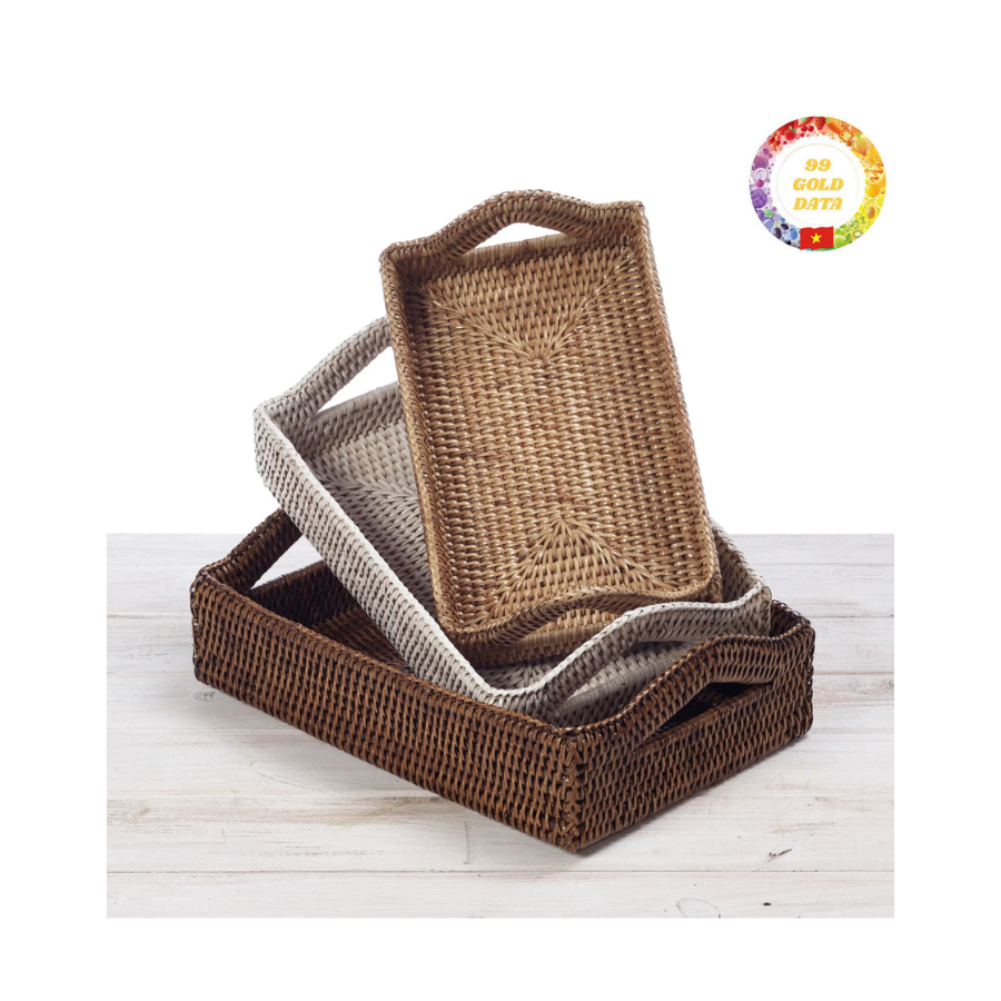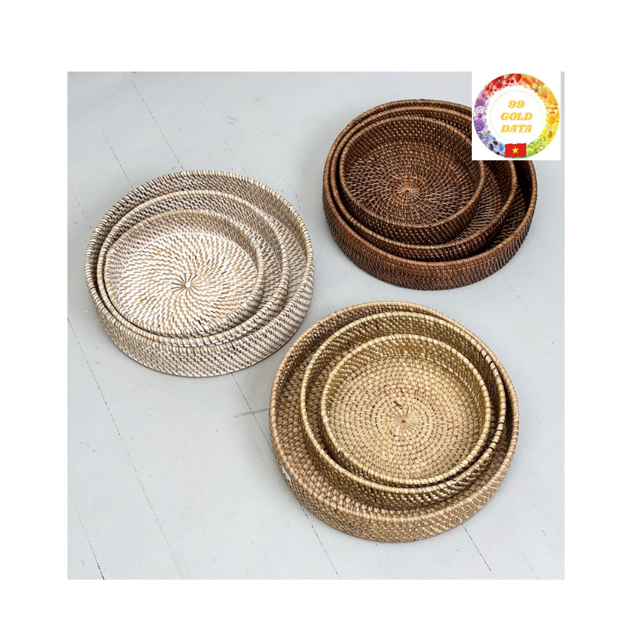 Vintage Rattan Basket Handmade Woven Tray Rustic Wood Color Wicker Basket for Breakfast Bread Coffee and Fruit Serving