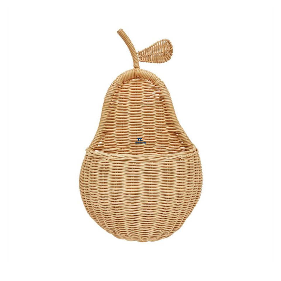 Vintage Rattan Lemon Shape Storage Basket Handmade Fruit Organizer Wicker Organizer Baby Room Nursery Chic Home Wall Decoration