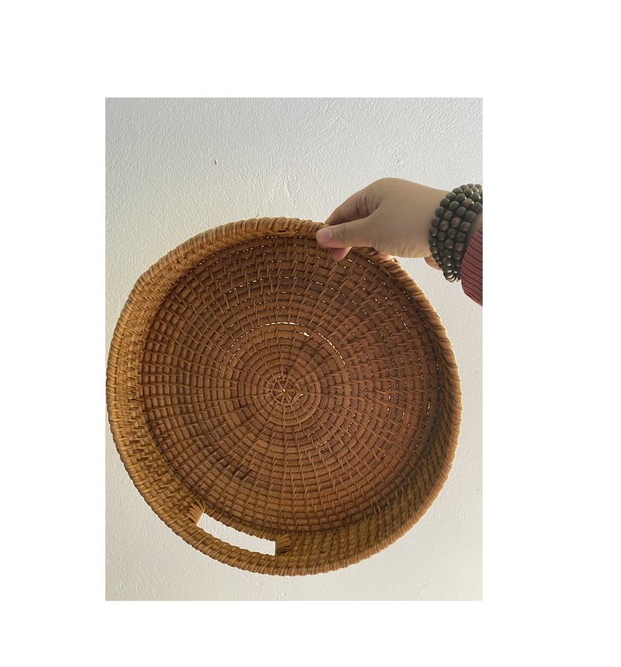 Vintage Rattan Picnic Basket / Outdoor Wicker Basket With Handle/ Natural Picnic Storage Basket Beach Basket Easter Basket Home