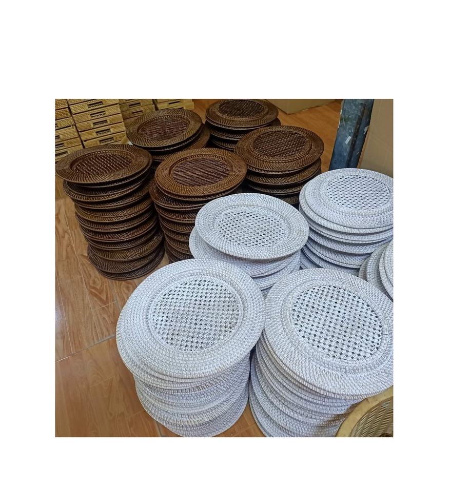 Vintage Dark Brown Rattan Round Plate Chargers Set of 4 / Natural Rattan Dishes Plates for Wedding Party Kitchen Dinnerware