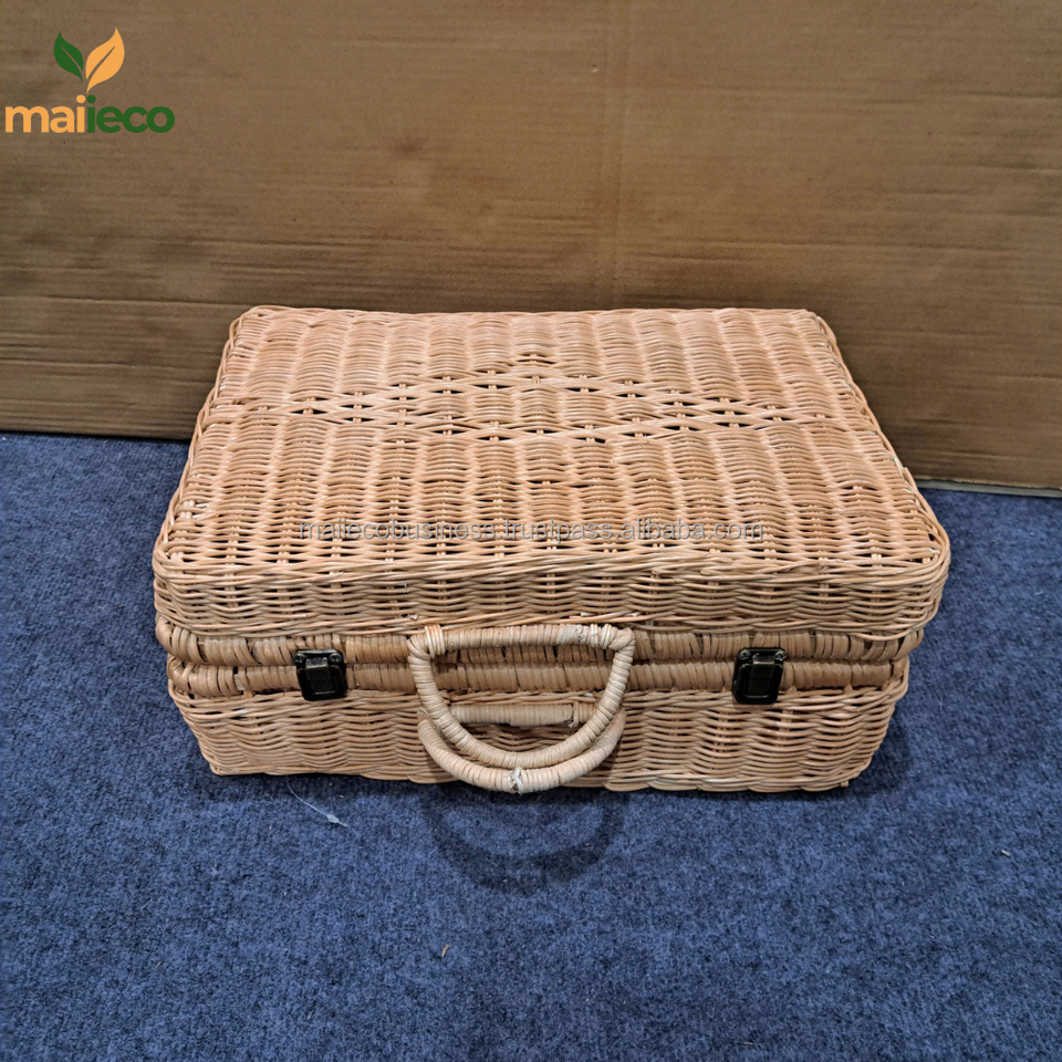 Keywords:Vintage Wicker Rectangular Picnic Basket with Lock Box