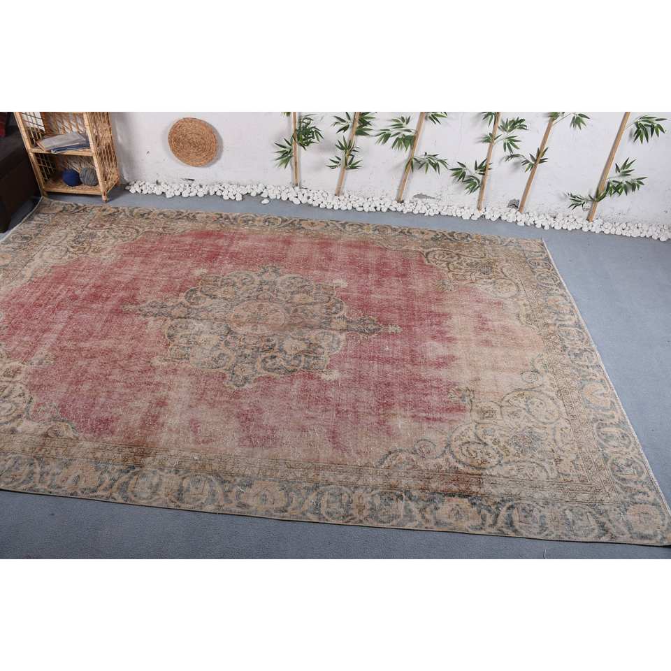 Vintage Red Beige Oriental Rug Large Area 7.5 X 12.1 ft New Model Rectangle Patchwork Hallway Patterns Wool Viscose Latex