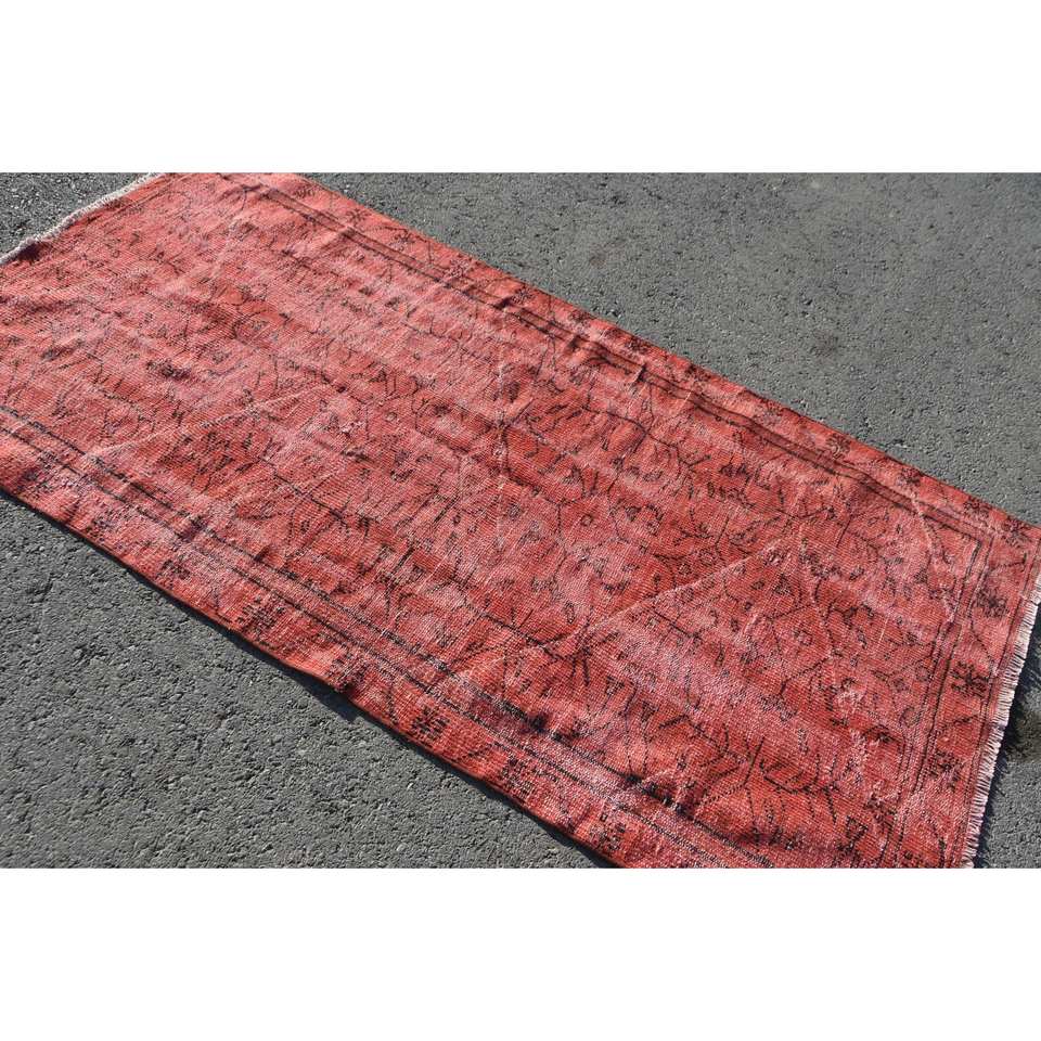 Vintage Red Black Kilim Rug 3.6 X 7.4ft Large Size Turkish Wool Area Rug Latex Backing 10mm Patchwork for Hallway Room Decor