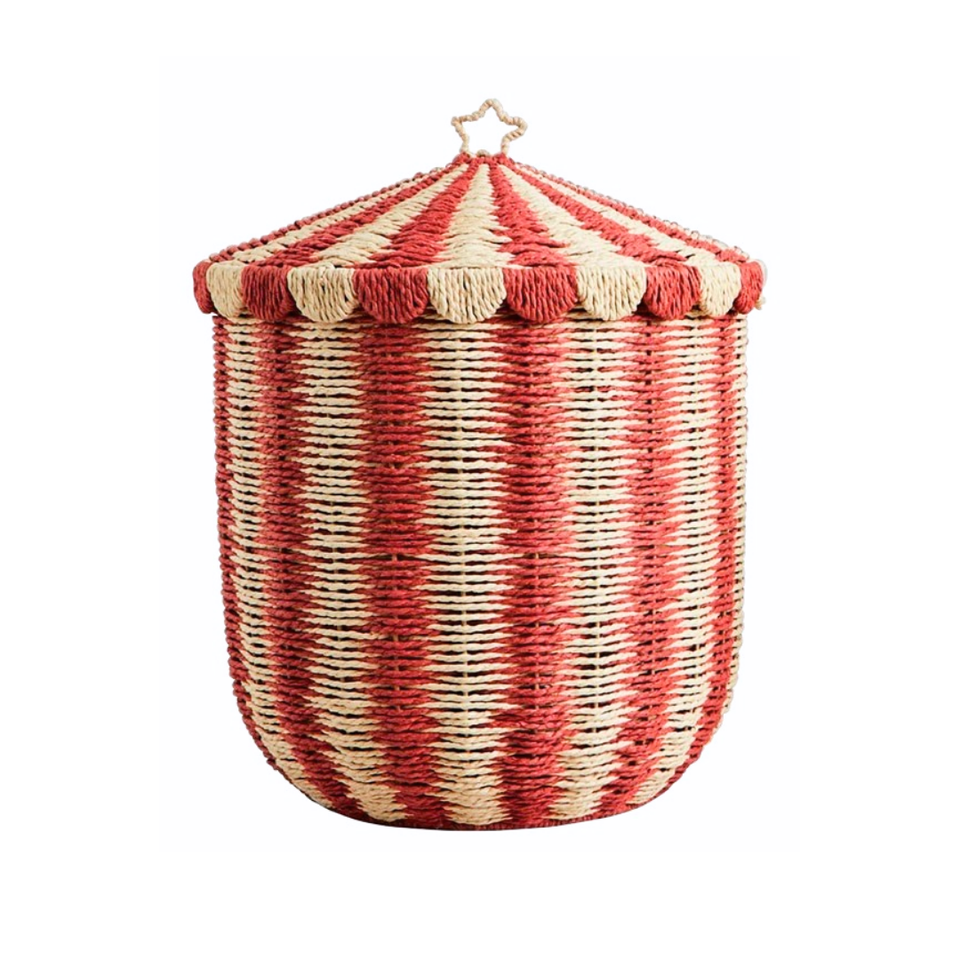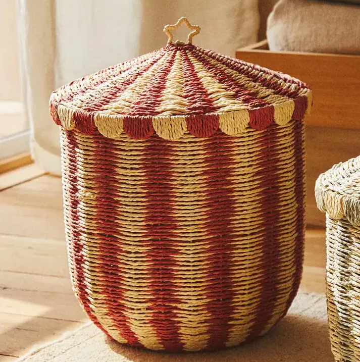 Vintage Red Circus Style Paper Rope Storage Basket with Lid Laundry Hamper for Toys Clothes Organizer Home Use From Vietnam