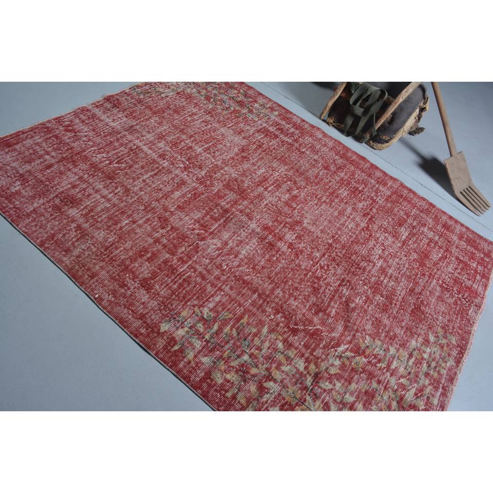 Vintage Red Turkish Rug 5.5 X 7.3ft Large Area Seagrass Wool Patchwork Pattern 10mm Thickness for Home Living Room Latex Backing