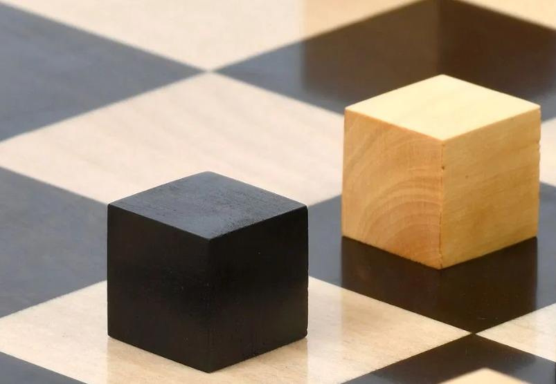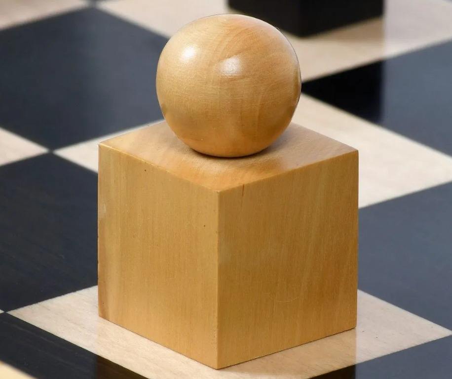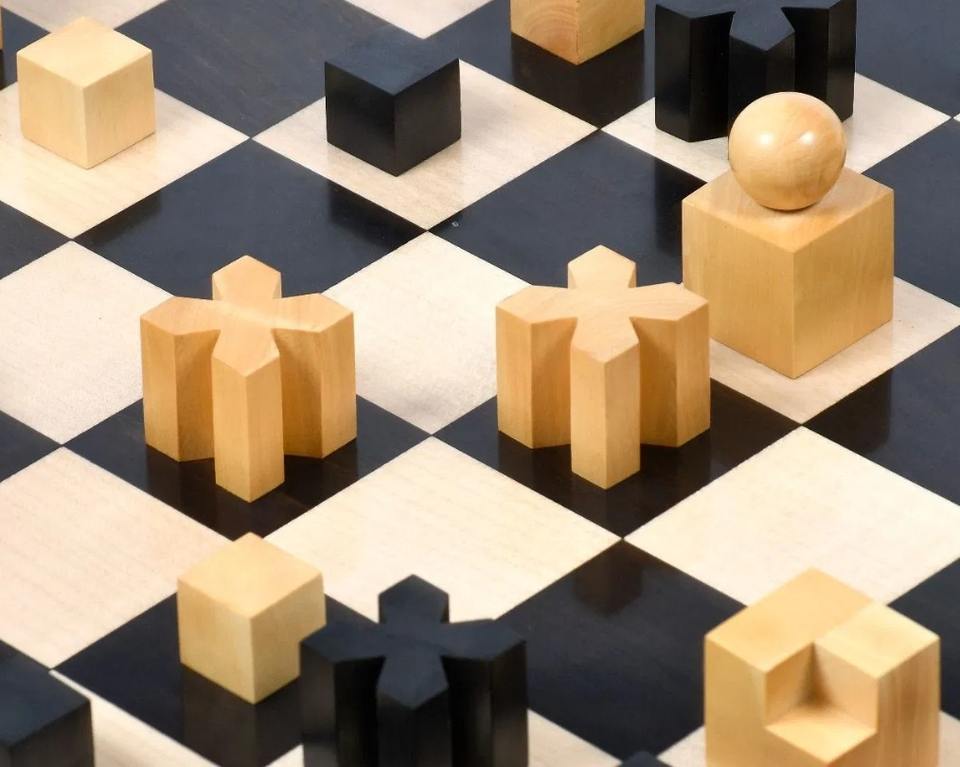 Vintage Reproduced 1924 Bauhaus Geometrical Abstract Chessmen in Ebonized & Natural Boxwood 1.9 Inch King Wooden Chess Set