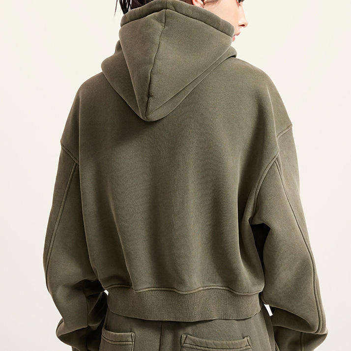 Vintage Retro Acid Wash Winter Women's Hoodie Custom Front 3D Embroidery Thick Fleece Thermal Crop Tops Double Zipper Oversized