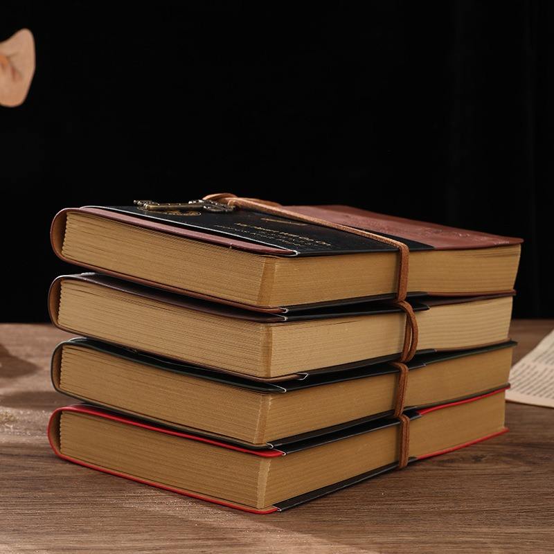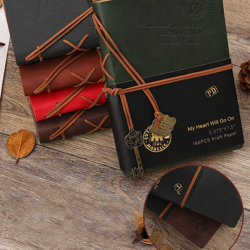 Vintage Retro Journal with Thermal Binding Softcover Leather Strap Blank Kraft Paper Inner Pages French-Folded Loose Leaf Design