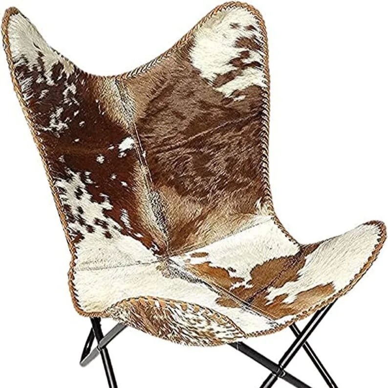 Vintage Retro Leather Butterfly Chair Classic Luxury Foldable Leisure Metal Seat Rustic Outdoor Living Room Bedroom Furniture