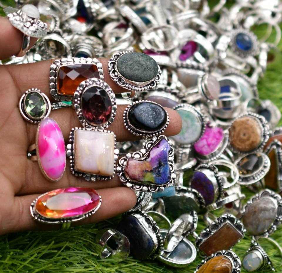 Vintage Christian Children's Adjustable Gemstone Rings 925 Silver Plated Brass Multi Gemstone Jewelry Bulk Set