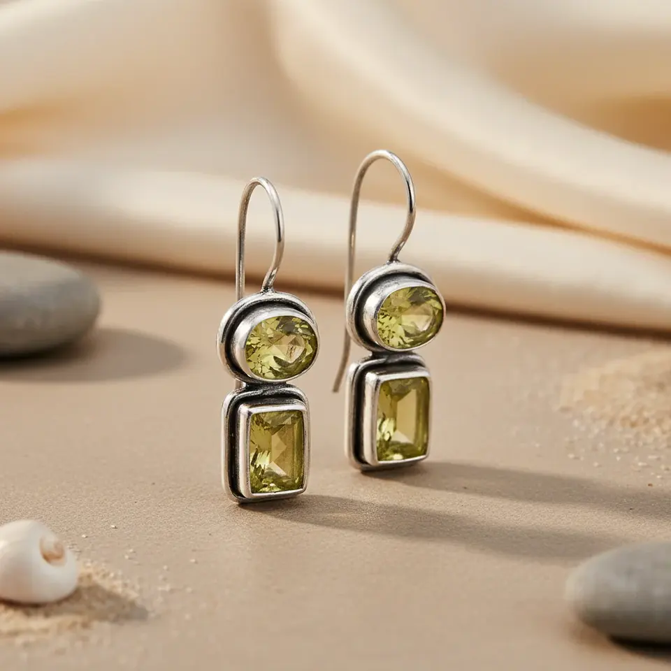 "Vintage Rose Gold Plated Diamond Cut Quartz & Diamond 925 Silver Drop Earrings for Women's Gift"
